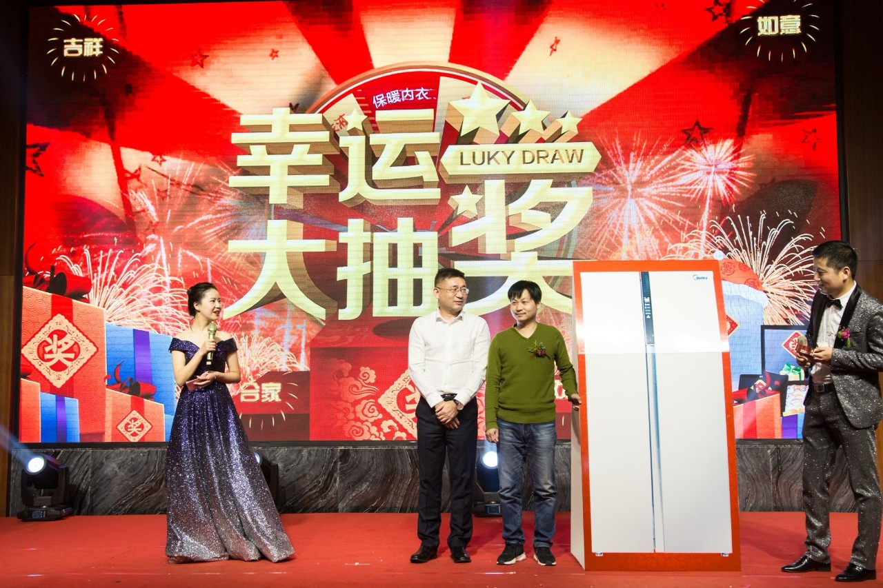 除了精彩的节目表演,大家最最最期待的应该是惊喜刺激的抽奖环节了,丰厚精美的奖品,更是让现场气氛高潮迭进,年会上安排了三轮抽奖,抽到奖品的同事们都是大家羡慕的幸运儿。