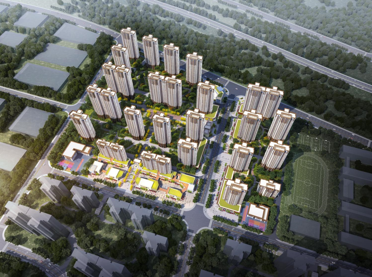 项目位于武汉市蔡甸经济开发区奓山街,东至双丰二路、南至双丰街、西至双丰三路、北至常乐大街。总用地面积为 128784 平方米,总建筑面积为 438334.40 平方米,地下室建筑面积112162.46平方米。新建 1 栋小高层及 22 栋高层住宅楼,共建设房屋 2733 套,配套设施涵盖幼儿园、商铺、文化活动站、社区服务用房、养老服务用房等。