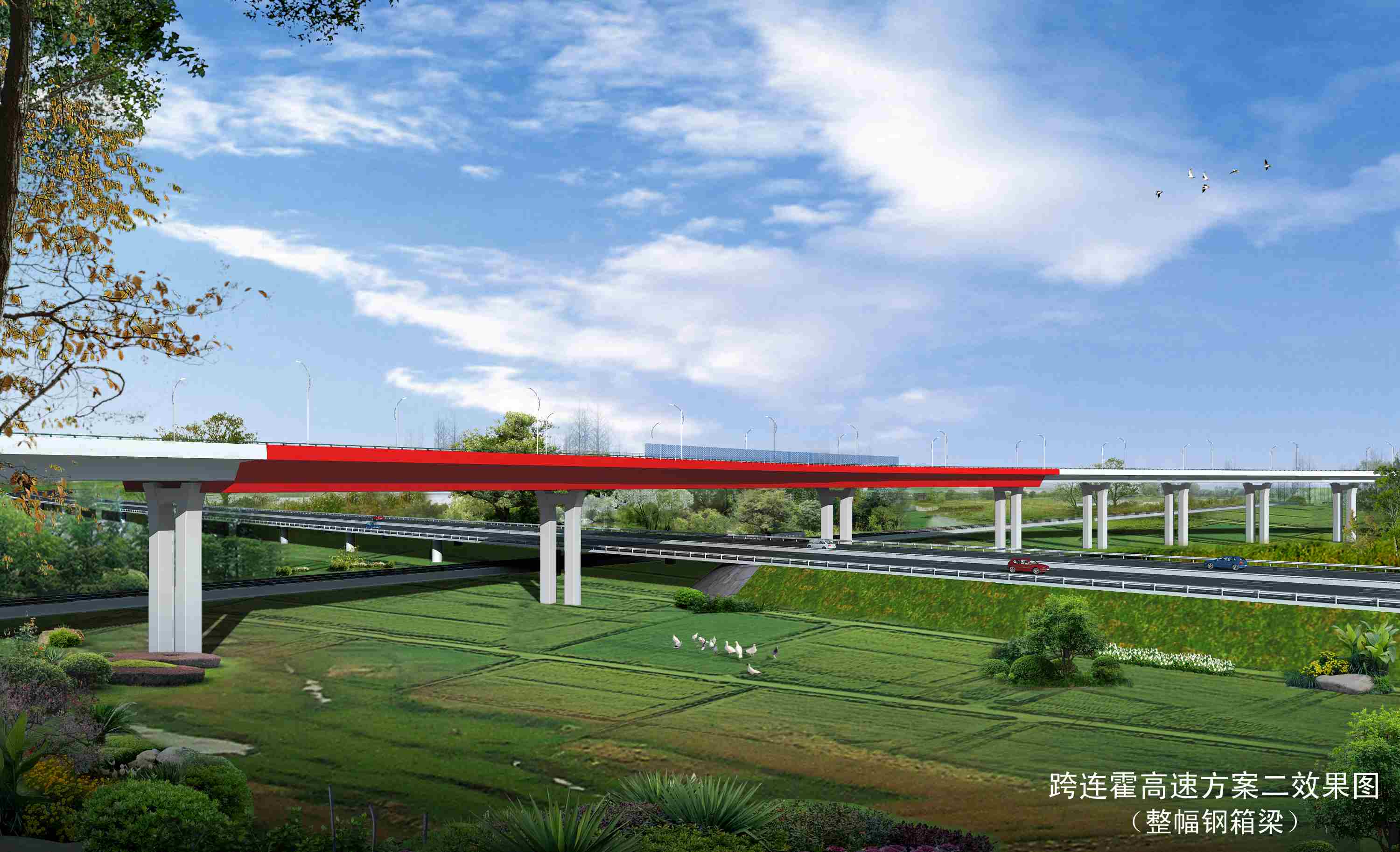 本工程地面辅道跨越贾鲁河采用预制简支变连续小箱梁,标准跨径30m。主线跨越连霍高速公路,连霍高速公路两侧路肩之间的净距为80米,高速公路中央分隔带为3.0m。该节点的施工方案为两幅跨径布置43.3+46.7米的波折钢腹板预应力混凝土桥。