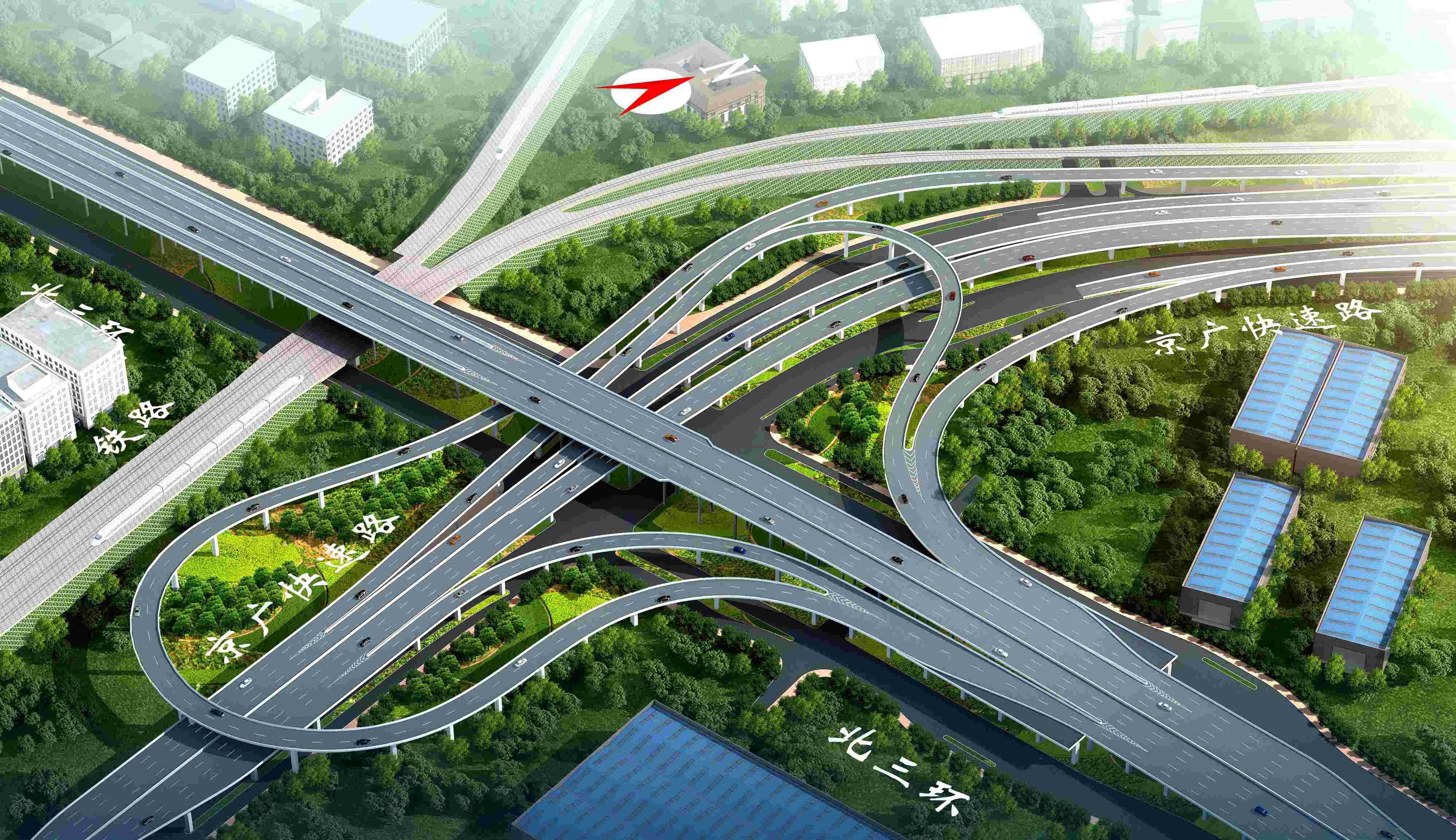 郑州市京广快速路二期(北三环--连霍高速)工程的起点接现状北三环立交,终点接现状连霍高速互通式立交,在江山路和天河路交叉口沿天河路向北约750米处落地,全长约4.6公里。中间跨越京广铁路和贾鲁河两个重要节点,主线为全高架桥,双向六车道,桥宽25.5m;平行匝道桥宽8.0m,定向匝道桥宽8.5m;地面桥梁与道路同宽。本工程主线大体呈南北走向。全线共布置8条(4对)平行匝道,2条定向匝道(定向匝道与既有桥梁需拼宽),1个立交(连霍高速立交)。主线高架桥采用城市快速路设计标准,设计车速80Km/h,地面道路采用城市主干道设计标准,设计车速50Km/h。本工程建安费约13.3亿,总投资约15.3亿。